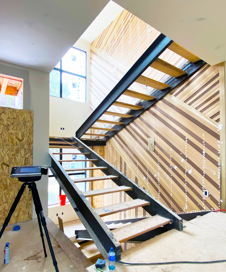 Für die Montage filigraner Glashandläufe an einer Stahltreppenanlage war absolute Präzision gefragt. Das Flexijet 3D-Laseraufmaßsystem ermöglichte ein millimetergenaues Erfassen der Stahlwangen – die Grundlage für das Layout der Glaspaneele.