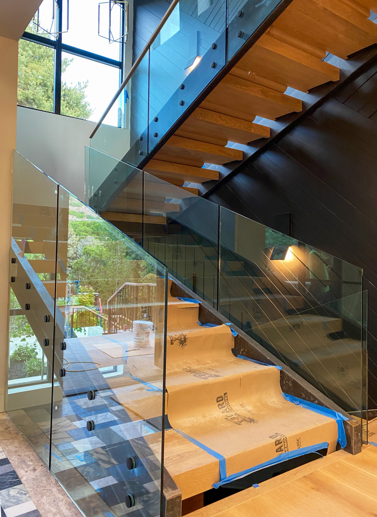 Dank der Rückprojektion konnten die Bohrpunkte exakt auf die Treppenwangen übertragen werden. Das Ergebnis: schnelle und saubere Montage ohne Nacharbeiten.
