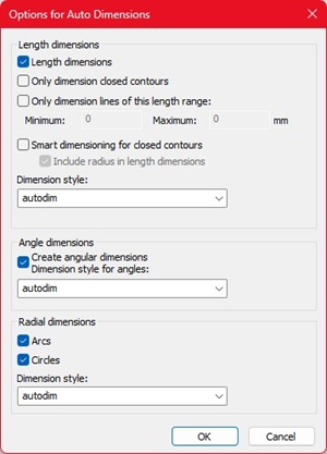 • Improved: For the “Options for Auto Diemensions” function, a default dimensioning style has been set for angle and radial dimensions. This ensures that two decimal places are correctly displayed for angle dimensions, even if no specific style was previously selected.