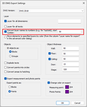 • 3D DWG export, convert layer names to numbers: This function is now also available when exporting a 3D DWG.