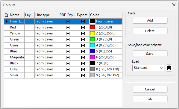 • Advanced color dialog & line type: In the advanced color dialog, the line type “From layer” can now be explicitly set as a style, which provides more flexibility in the drawing structure.