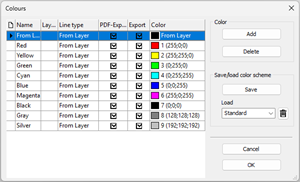 • A checkbox can be used to control whether objects should be included in the export (e.g., DWG/PDF) or not for each color.