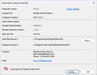 • The ‘About FlexiCAD’ dialog now shows the next recommended service date, providing a quick and easy overview of your system’s maintenance needs.