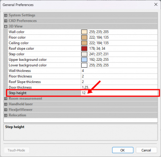 • Adjustable step height: The flexibility in staircase planning has been increased! The height of the stair treads can now be adjusted both in the general settings and in the export dialog for 3D-DWG and IFC.